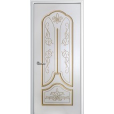 Дверь с ПВХ покрытием Александрия ДГ (Софт белый/патина)